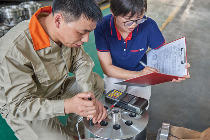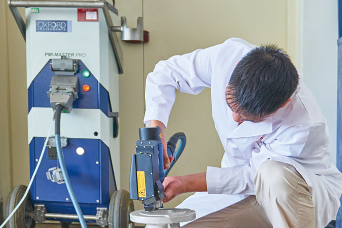 拥有光谱分析、探伤检验、硬度检验、拉伸和冲击检验、扭矩测试、强度和泄漏检验、膜厚检验等设备,为优质的产品的质量提供了可靠的保证。实验中心能够对包括球形阀、球阀、蝶阀等低磅级和小口径阀门进行流量实验。同时能够模拟阀门在设计工况下(压力,介质,温度)的各种实验和检验。 公司按照ISO9001:2008以及TSG的要求选择合格的供应商,并对供方进行动态管理,保证了原材料的质量。公司设有专门的实验室,配备专业的设备来进行原材料的光谱分析,金相分析,HIC\SSC试验,拉伸试验,冲击试验,硬度测试,疲劳测试,无损检测等试验,确保原材料符合顾客要求和标准的要求。 装配检验是产品出厂前重要的质量控制环节,试验、检验是保证产品安全、可靠的验证手段。通过对产品进行压力试验、阀门寿命试验、静电试验、电火花检测、疲劳试验、流量试验等多种试验,确保提供给顾客的产品安全、可靠。